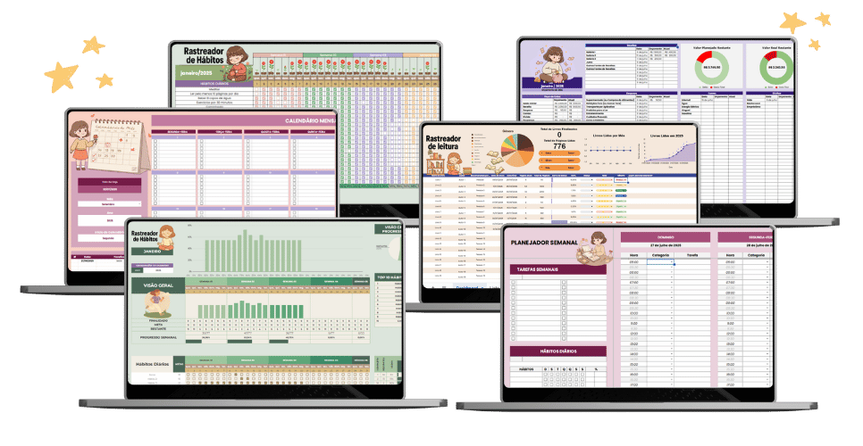 🥰 Pacote com 6 planilhas + vídeo-aulas